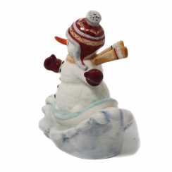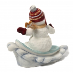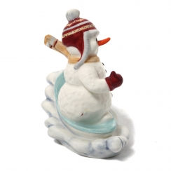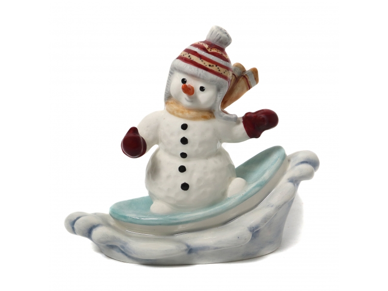 Фарфоровая фигура (статуэтка) "Снеговик съезжающий на сноуборде". Ручная роспись.