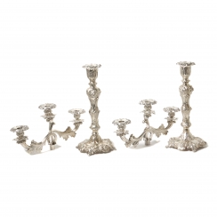 Серебряные канделябры (подсвечники), 2 шт, декорированы рельефными цветами.