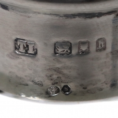 Англия, г. Лондон, 1923 год, мастерская Thomas Ingleton (зарегистрирована в 1884 году). Ввезена в Швецию. Государственное пробирное клеймо Швеции для ввезенных серебряных изделий.