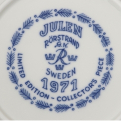 319957 - Рождественская тарелка, 1971 год, 19,2 х 19,2 х 2,2 см, Швеция, Rorstrand