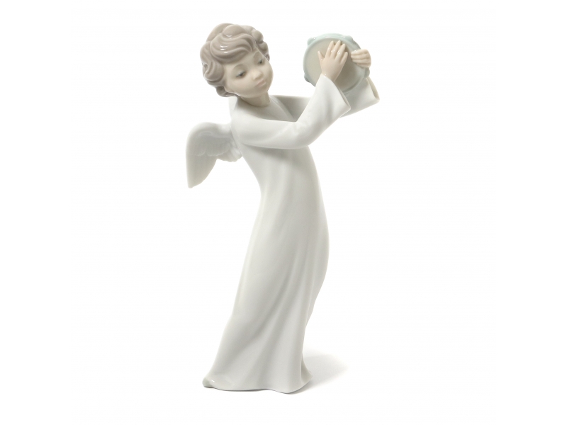 Фарфоровая фигура (статуэтка) "Ангел с тамбурином". Ручная подглазурная роспись.