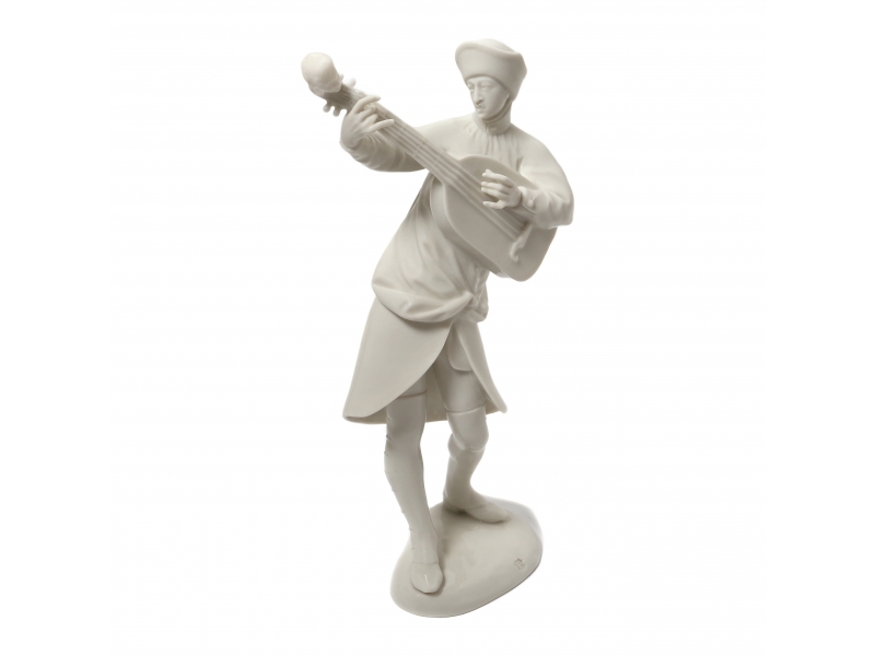 Фарфоровая фигура (статуэтка) "Гитарист" из серии "Богемского горного оркестра". Нерасписанный белый фарфор.