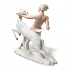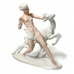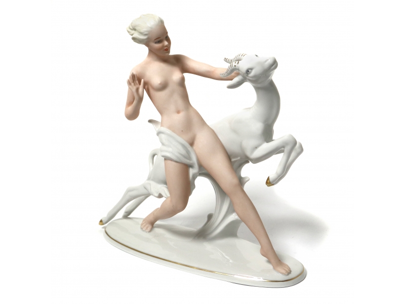 Фарфоровая фигура (статуэтка) "Обнаженная девушка с газелью". Ручная роспись.