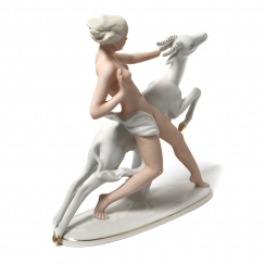 Отколото левое заднее копыто у газели, у девушки отколот указательный палец на левой руке. ============================== Porcelain figurine "Nude girl with a gazelle". Hand-painted.