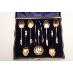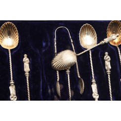 Информация о лоте 303996 - Набор из шести кофейных ложек, ситечка и щипцов для сахара в оригинальной коробке, общий вес 60 гр, 925 пр 371982 - Ложка в футляре, 31 гр, 925 пр, 12,7 см |