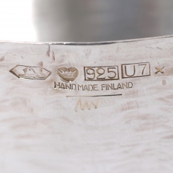 Height: 7.7 cm, diameter of the top: 16,7 cm. Weight: 302 grams of sterling silver 925 fineness.