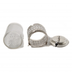 Вес без стекла: 83 грамма серебра 925 пробы. ============================= Jar for honey. Glass, sterling silver 925 fineness.
