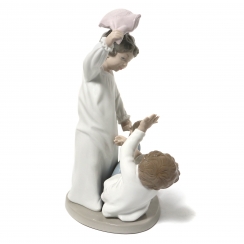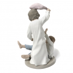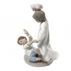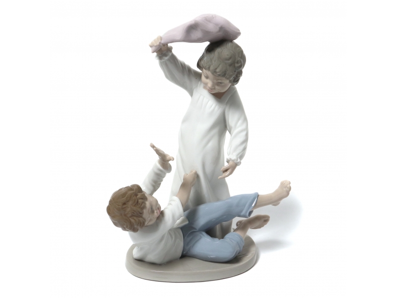 Фарфоровая фигура (статуэтка) "Бой подушками" (Играющие дети). Ручная подглазурная роспись.