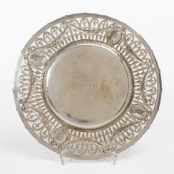 Подставка или поднос с ажурными полями, Германия, г. Ханау, 252 гр, не ниже 800 пр, диаметр 21 см, диаметр дна 11,3 см