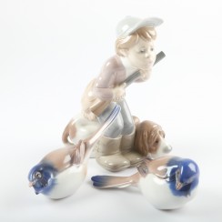 - Мальчик с собакой на охоте, высота 18,5 см, максимальная длина 14,5 см, ширина 10 см, Испания, Lladro