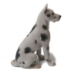 Фарфоровая фигура (статуэтка) "Сидящий датский дог". Ручная подглазурная роспись.