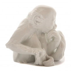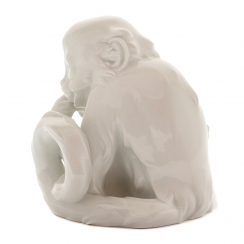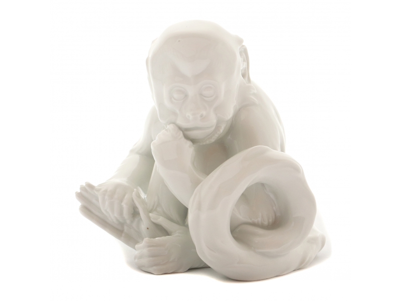 Фарфоровая фигура (статуэтка) "Обезьяна". Нерасписанный белый фарфор. Белая глазурь.