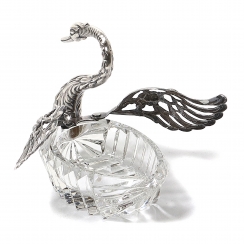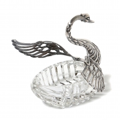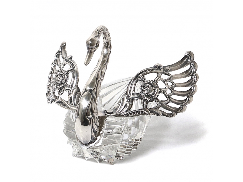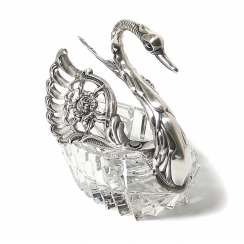 Стекло без сколов. =============================== Bowl in the form of a swan. Glass, sterling silver of 925 fineness.