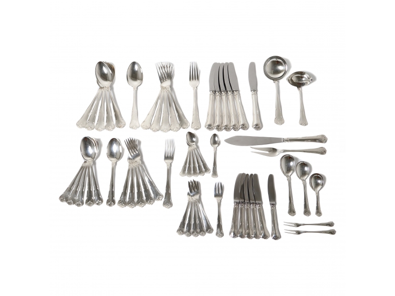 Серебряные столовые приборов на 6 персон, 57 предметов. Дизайн "Усадьба" (Herregaard).