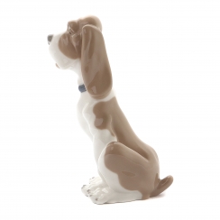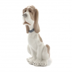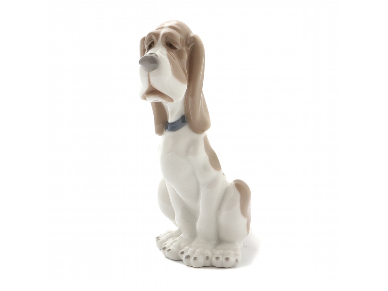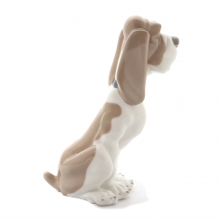 Фарфоровая фигура (статуэтка) "Сидящий бассет-хаунд". Ручная подглазурная роспись.