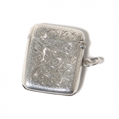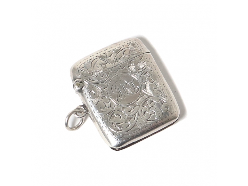 Серебряная спичечница - брелок, декорированная растительным орнаментом.
