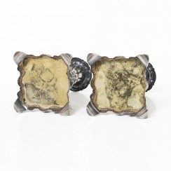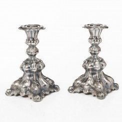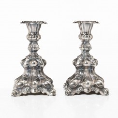324302 - Серебряные подсвечники, 2 шт, общий вес с утяжелением 641 гр, серебро 830 пр, высота 17,5 см, основание 10 х 10 см, диаметр отверстия для свечи 2,2 см |
