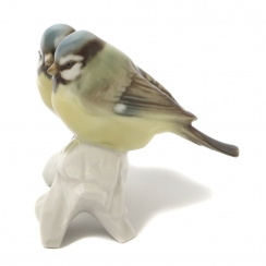Фарфоровая фигура (статуэтка) "Пара синиц на ветке". Ручная подглазурная роспись.