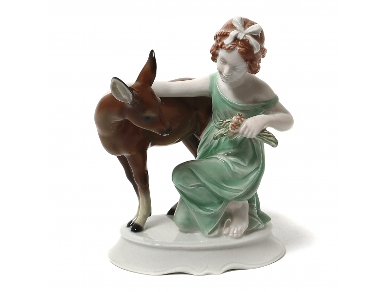 Без сколов, повреждений и без реставраций. ============================== Porcelain figurine "Girl with deer". Hand-painted underglaz.