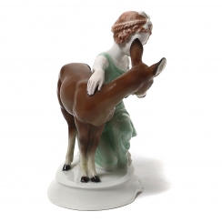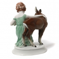 Фарфоровая фигура (статуэтка) "Девушка с олененком". Ручная подглазурная роспись.