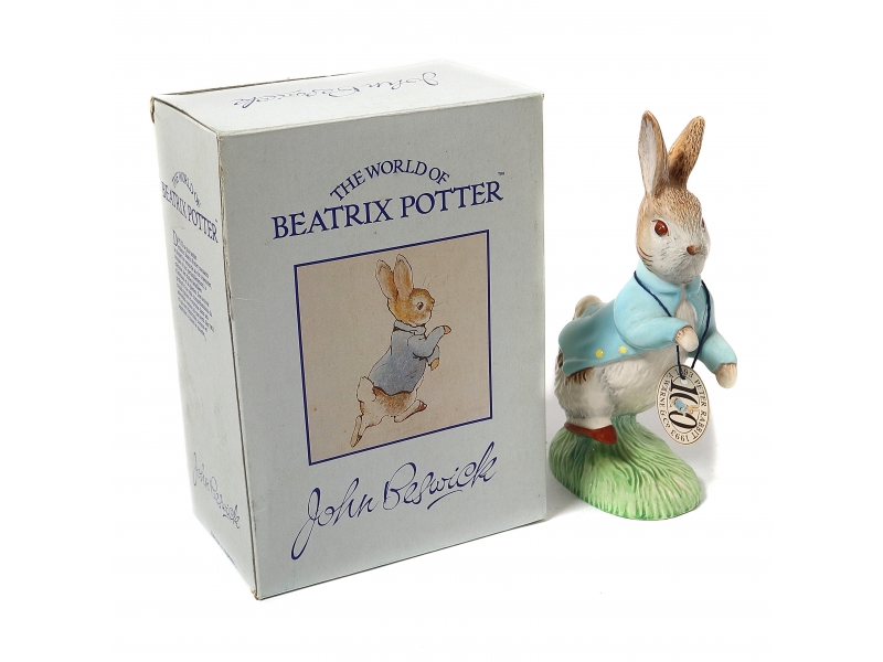 Фарфоровая фигура (статуэтка) "Кролик Питер". Персонаж из детской книги "Сказка о кролике Питере" - Беатрикс Поттер. Ручная роспись. В оригинальной коробке.