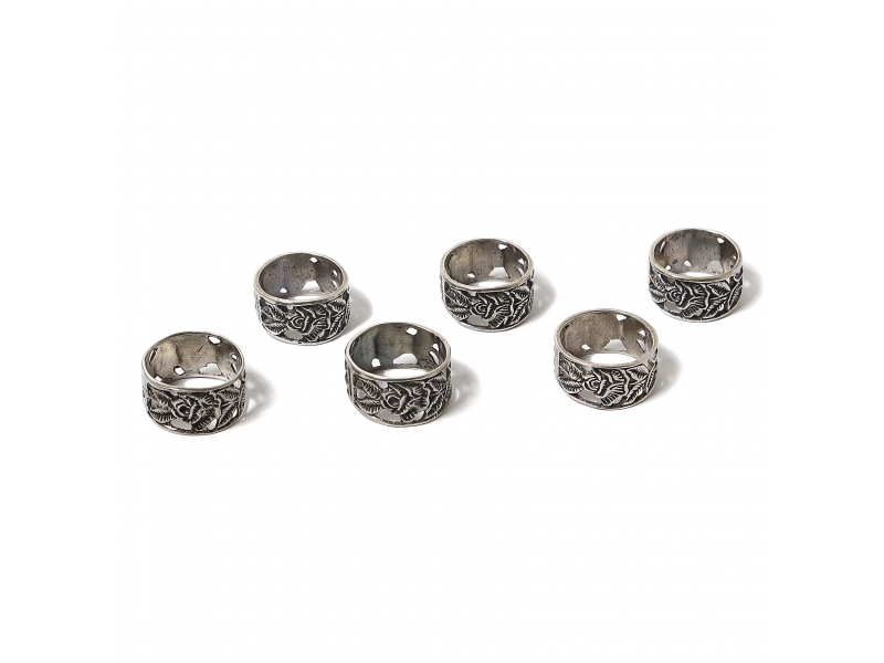 Серебряные кольца для бумажных салфеток, 6 шт. Дизайн "Хильдесхаймская роза" (Rose of Hildesheim).