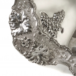Серебряная ваза на ножке, декорирована рельефной виноградной лозой.
