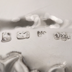 Height: 17.3 cm, bowl size: 26.5 x 26.5 cm, base diameter: 13 cm. Weight: 649 grams, sterling silver of 925 fineness.