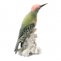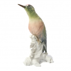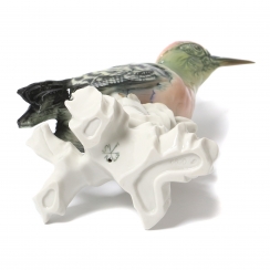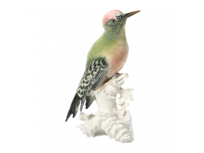 Фарфоровая фигура (статуэтка) "Дятел на ветке". Ручная подглазурная роспись.