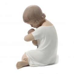 Фарфоровая фигура (статуэтка) "Девочка с куклой". Ручная подглазурная роспись.
