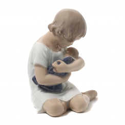 Фигуру продолжали производить также после объединения фабрик Royal Copenhagen и Bing & Grondahl (1985-1989) под брендом Royal Copenhagen, с новым номером модели: 121. =============================== Porcelain figurine "Girl with doll". Hand-painted underglaze.