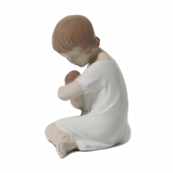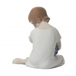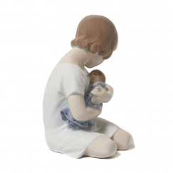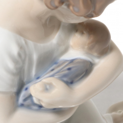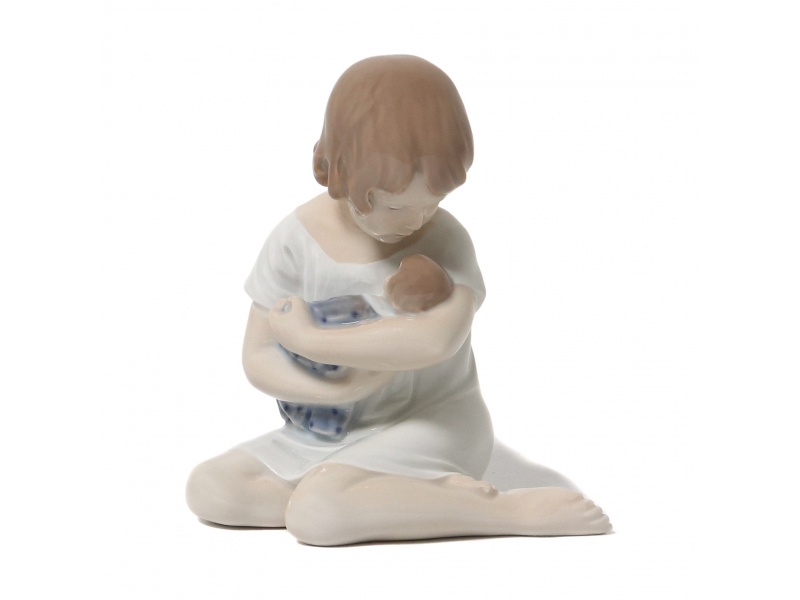 Фарфоровая фигура (статуэтка) "Девочка с куклой". Ручная подглазурная роспись.