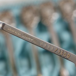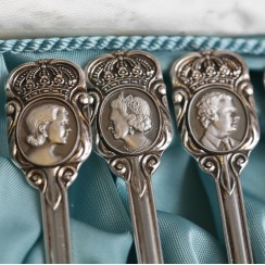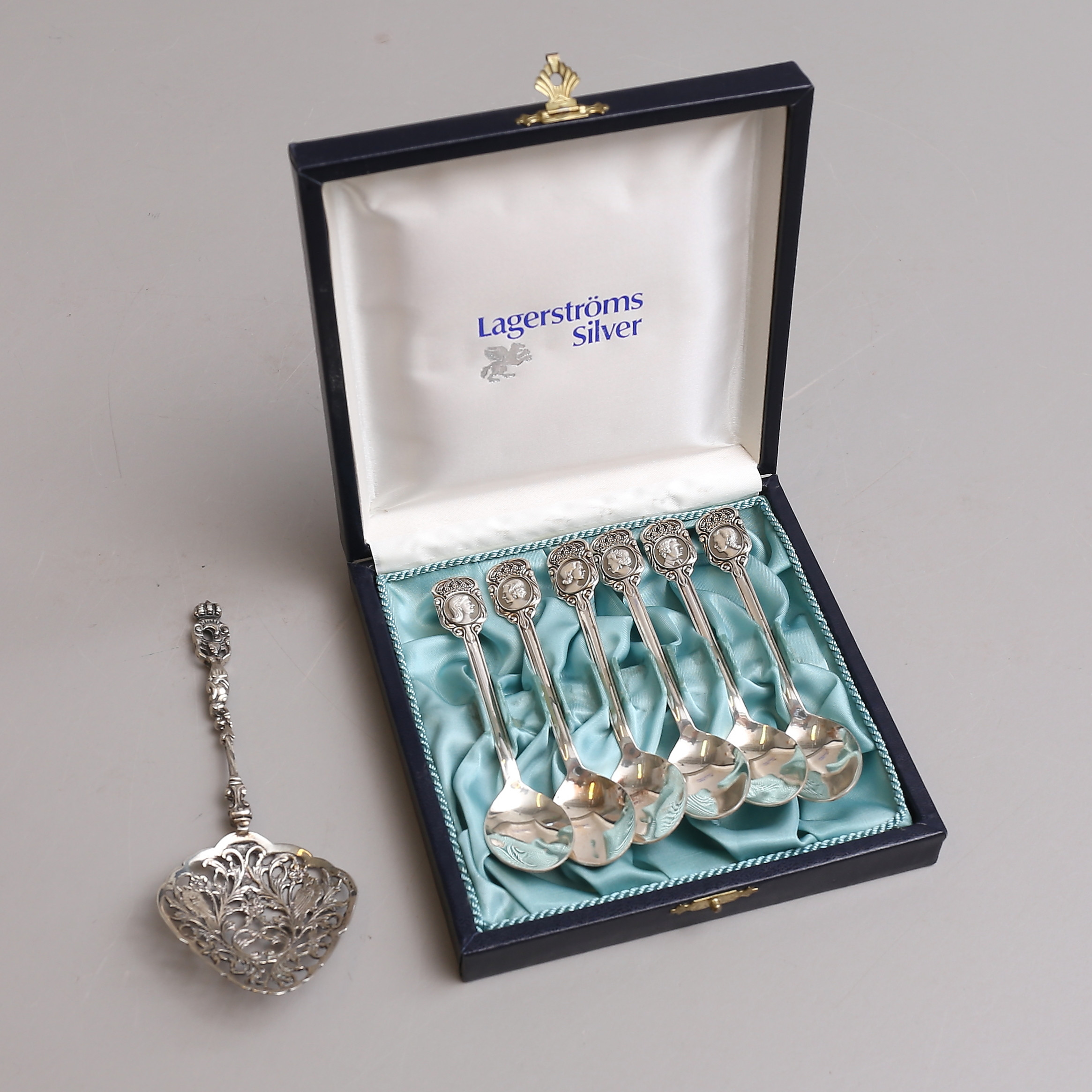 Информация о лоте 329685 - Сувенирные небольшие чайные ложки, 6 шт, 86 гр, 830 пр, 11,2 см. Коробка 14,3 х 14,3 х 3,7 см 367131 - Серебряная ложка-ситечко. Швеция, 1953 год |