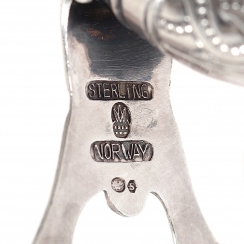 Норвегия, г. Берген, мастерская Magnus Aase (годы работы: 1876-1953). Ввезены в Швецию. Государственное пробирное клеймо Швеции для ввезенных серебряных изделий.