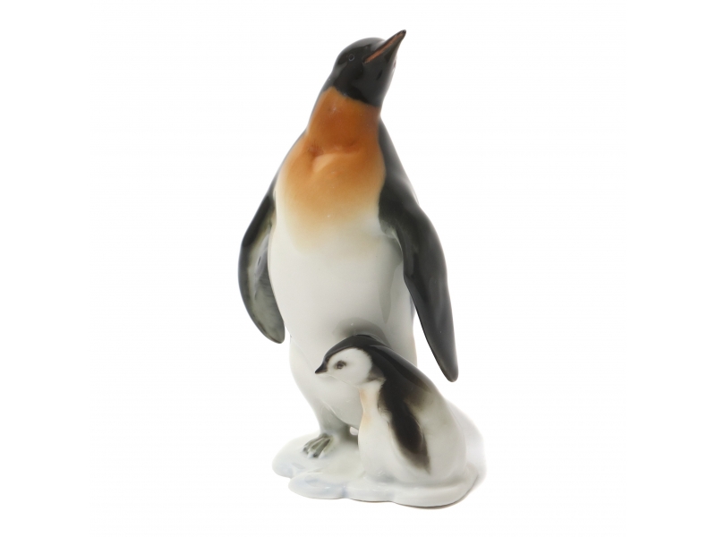 Фарфоровая фигура (статуэтка) "Пингвин с пингвиненком". Ручная подглазурная роспись.