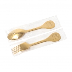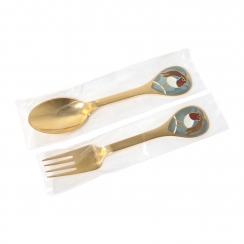 Годовые десертные ложка и вилка "Зарянка (Малиновка)". Серебро, позолота, эмаль.
