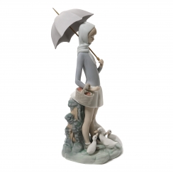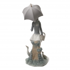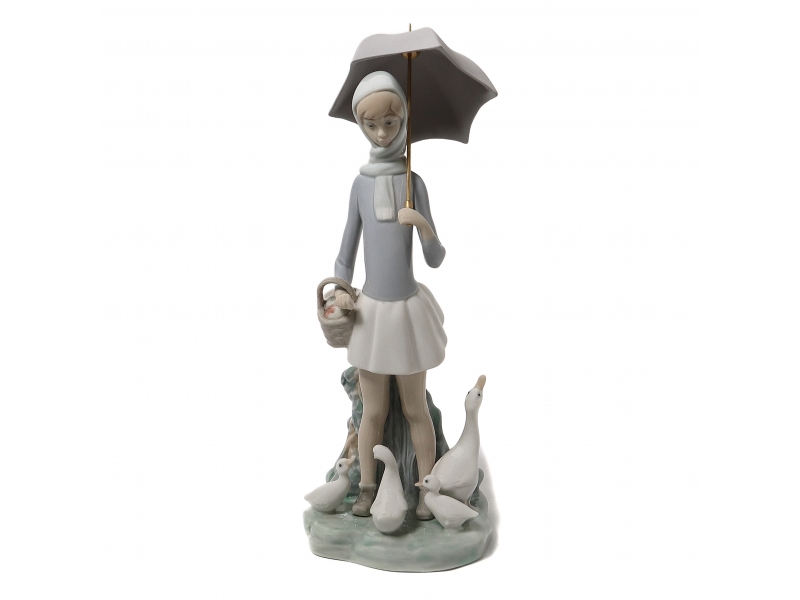 328775 - Девочка с зонтом с гусями, максимальная высота 26,3 см, основания 9,9 х 10 см, Lladro