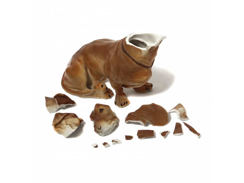 Фарфоровая фигура под реставрацию "Такса". Ручная подглазурная роспись.