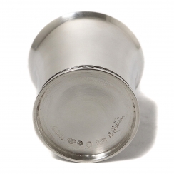 Высота: 6 см, диаметр верха: 6 см. Объём: 100 мл. Вес: 65 граммов серебра 830 пробы. =============================== Designer silver beaker. Designer Erik Råström (Erik Rastrom).