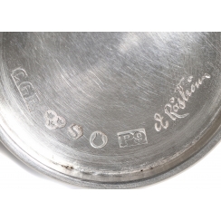 Height: 6 cm, diameter of the top: 6 cm. Volume: 100 ml. Weight: 65 grams of silver 830 fineness.