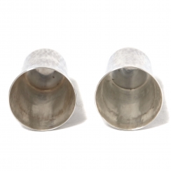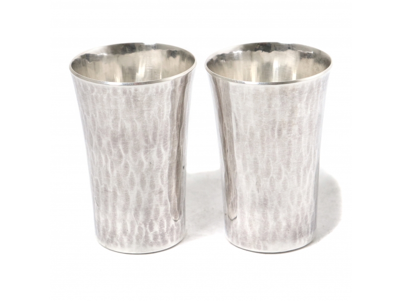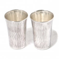 Высота: 7,2 см, диаметр верха: 4,5 см. Объём: 60 мл. Общий вес: 147 граммов серебра 925 пробы. =============================== Silver vodka cups (shot cups), 2 pcs, forging. Handmade (haands medet).