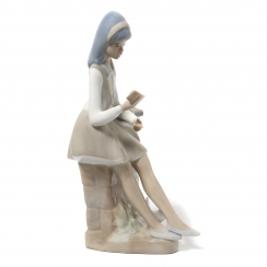 Фарфоровая фигура (статуэтка) "Читающая девочка". Ручная подглазурная роспись.