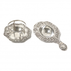 330610 - Ситечко на подставке, 70 гр, 830 пр, высота в сборе 4 см, длина 11,5 см, диаметр полей 7,3 см