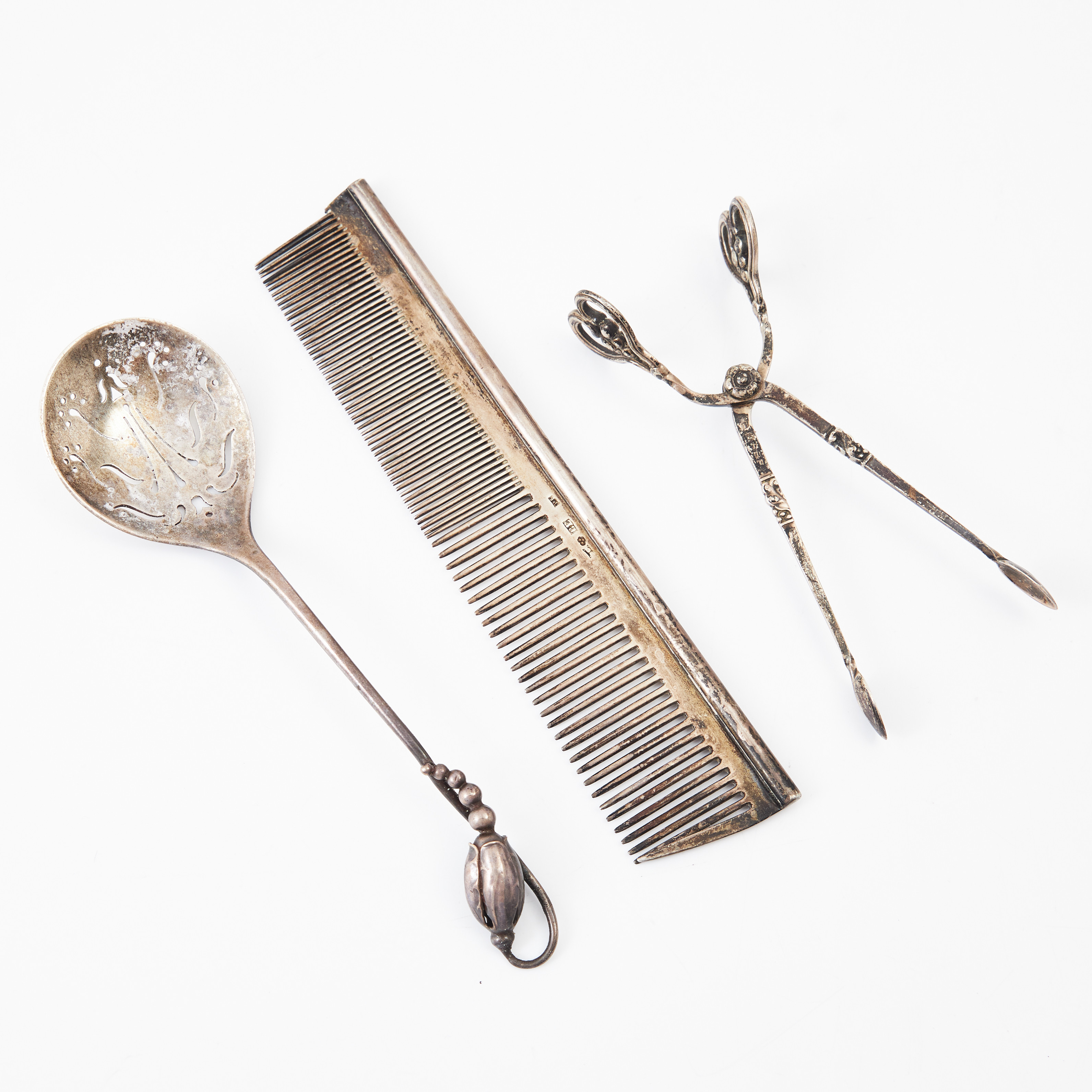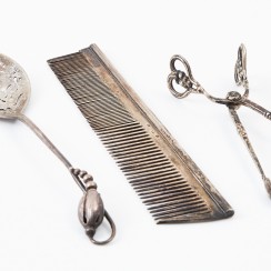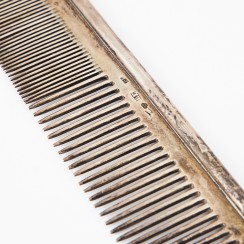 Информация о лоте 263636 - Серебряная ложка с перфорированным черпаком. Дания 256139 - Серебряные щипцы для сахара. Дания, Georg Jensen. 310255 - Расческа, 44 гр, 830 пр, длина 14 см, максимальная ширина 3 см |
