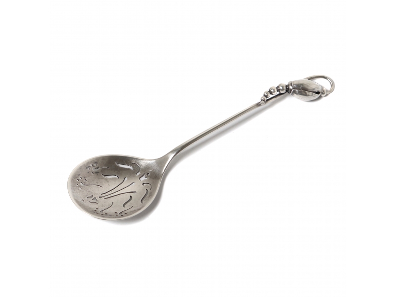 ![]() 263636 - Серебряная ложка с перфорированным черпаком. ДанияСеребряная сервировочная ложка с перфорированным черпаком.Дизайн "Магнолия" (Magnolie) разработан в 1919 году Georg Jensen. Дания, г. Копенгаген, 1910-1925 гг, мастерская Georg Jensen. Ввезена в Швецию, г. Гётеборг, 1928 год, импортер Karl Anderson (годы работы: 1892-1933). Государственное пробирное клеймо Швеции для ввезенных серебряных изделий. "Georg Jensen" – один из старейших дизайнерских домов Скандинавии, основанный в 1904 году выдающимся ювелиром Georg Jensen (годы жизни: 1866 – 1935). Длина: 14 см. Вес: 18 граммов серебра 830 пробы. =========================== Silver serving spoon with perforated scoop. Pattern "Magnolie" designed in 1919 by Georg Jensen. Denmark, Copenhagen, the 1910-1925, workshop Georg Jensen. Was imported to Sweden, Gothenburg, year 1928, importer Karl Anderson (worked since 1892 to 1933). "Georg Jensen" – one of the oldest design homes of Northland, founded in 1904 year by the famous jeweler – Georg Jensen (years of life: 1866 – 1935). Length: 14 cm. Weight: 18 grams of silver 830 fineness. ![]() 256139 - Серебряные щипцы для сахара. Дания, Georg Jensen.Серебряные щипцы для сахара.Дания, г. Копенгаген, мастерская Georg Jensen, 1910-1925 гг. Ввезены в Швецию. Государственное пробирное клеймо Швеции для ввезенных серебряных изделий. "Georg Jensen" – один из старейших дизайнерских домов Скандинавии, основанный в 1904 году выдающимся ювелиром Georg Jensen (годы жизни: 1866 – 1935). Длина: 10,3 см. Вес: 18 граммов серебра 925 пробы. ==================================== Silver sugar tongs. Pattern "Acorn", designed in 1915 by Johan Rohde. Denmark, Copenhagen, workshop Georg Jensen, the 1910-1925. Was imported to Sweden. "Georg Jensen" – one of the oldest design homes of Northland, founded in 1904 year by the famous jeweler – Georg Jensen (years of life: 1866 – 1935). Length: 10.3 cm. Weight: 18 grams of sterling silver 925 fineness. ![]() |