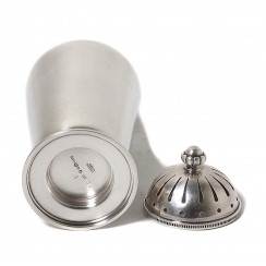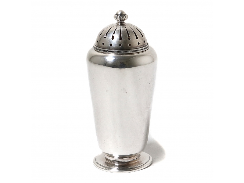 Высота: 13 см, диаметр основания: 5 см. Вес: 132 грамма серебра 830 пробы. =========================== Silver sugar shaker castor.