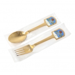 Годовые десертные ложка и вилка "Рождественская роза". Серебро, позолота, эмаль.