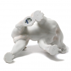 Дания, г. Копенгаген, Bing & Grondahl. Номер модели: 1992. Инициалы художника, расписавшего статуэтку: N . Клеймо производителя: 3 towers B&G Kjobenhavn Made in Denmark, 1952-1958 гг.
