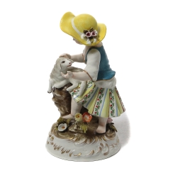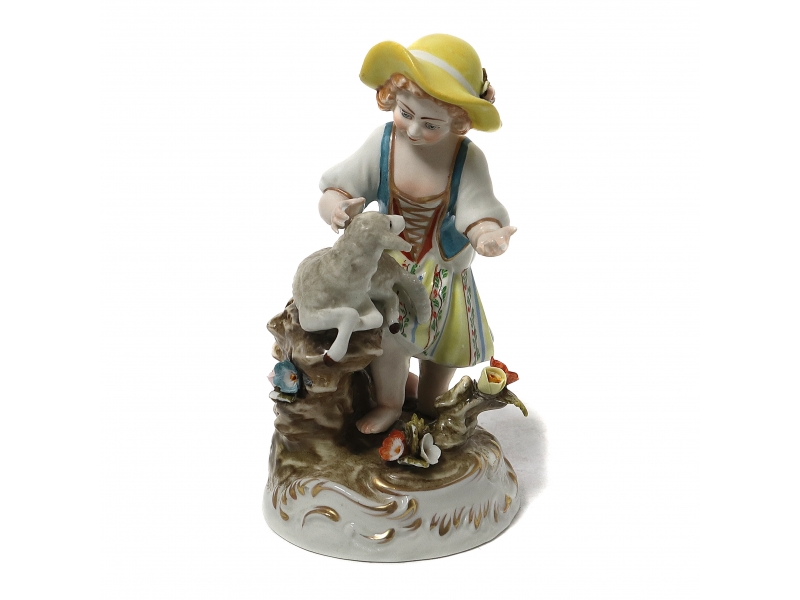 Фарфоровая фигура (статуэтка) "Девочка с ягненком". Ручная роспись.
