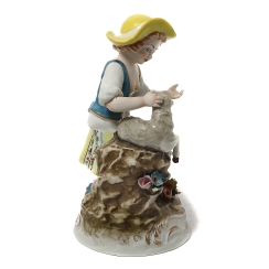 Сколы на пальцах девочки и цветах. ============================ Porcelain figurine "Girl with a lamb". Hand-painted.